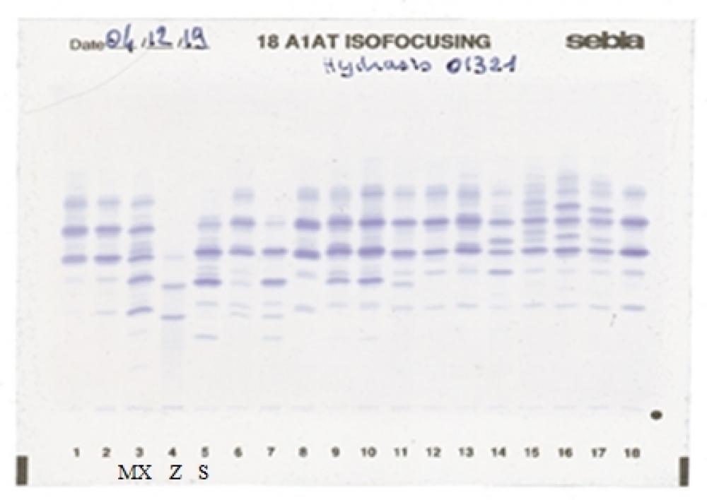 IEF pattern on agarose gel : Z in lane 4