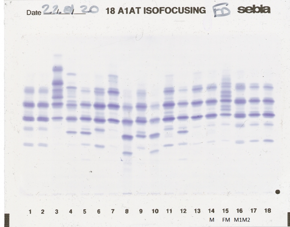 IEF pattern on agarose gel : FM in Lane 15