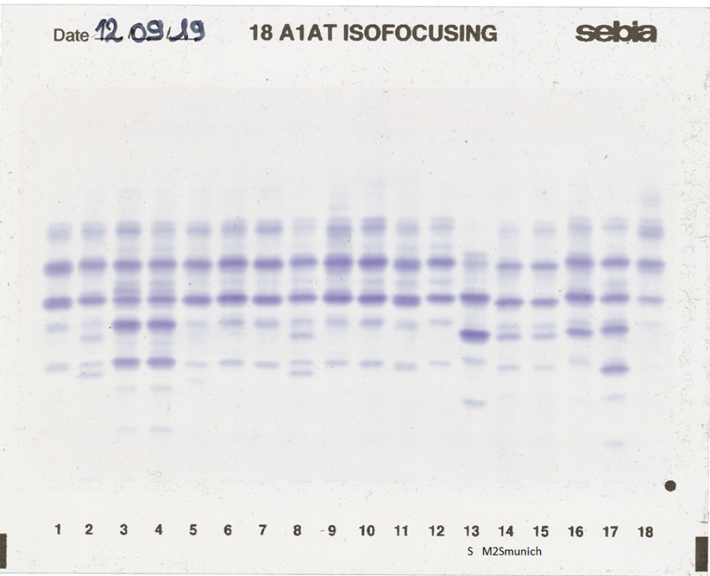 IEF pattern on agarose gel : M2Smunich in lane 14
