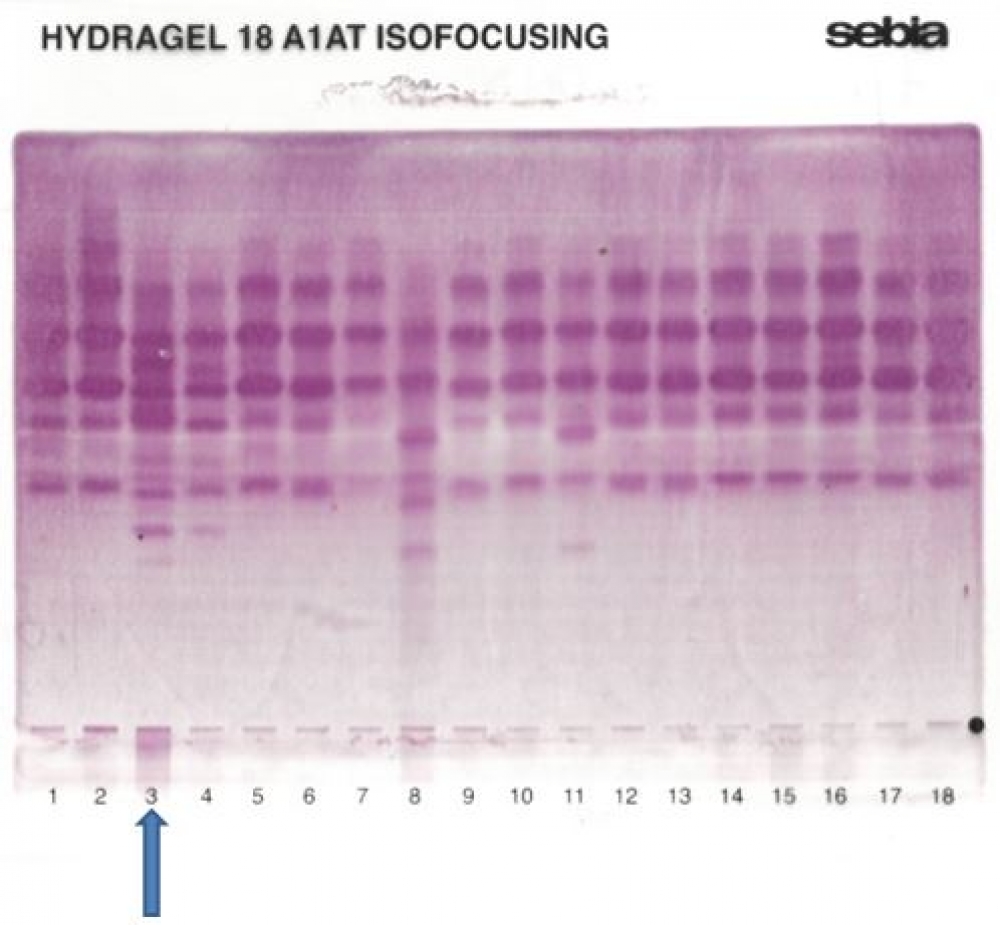 - This variant was identified at a heterozygous status in a 36-year old man presenting with emphysema and cholestatsis.